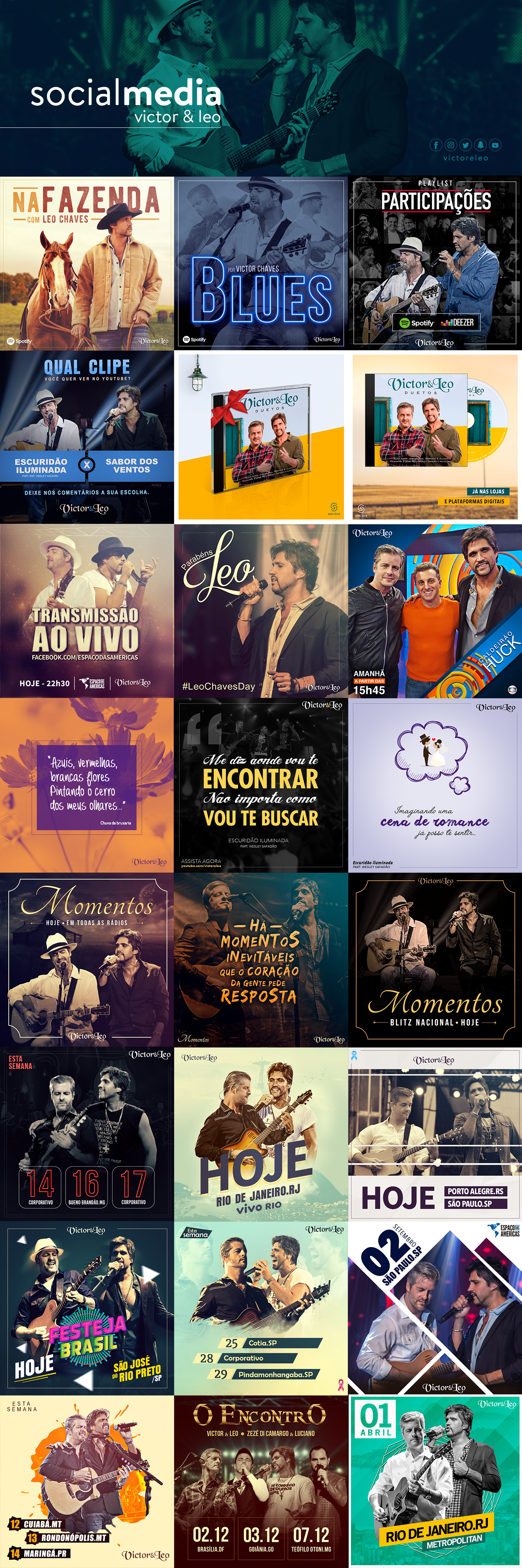 Peças desenvolvidas para as redes oficiais da dupla Victor & Leo