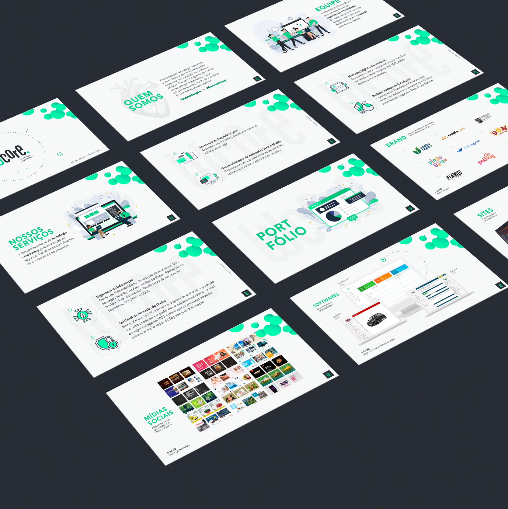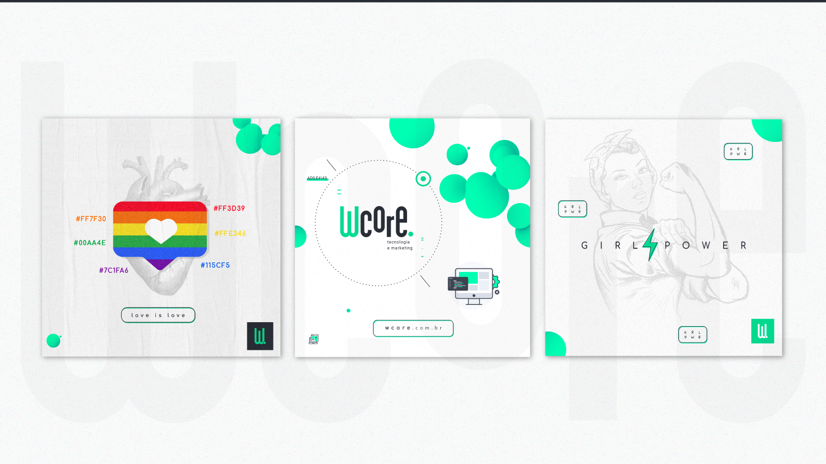 Identidade visual desenvolvida para Wcore Tecnologia e Marketing.